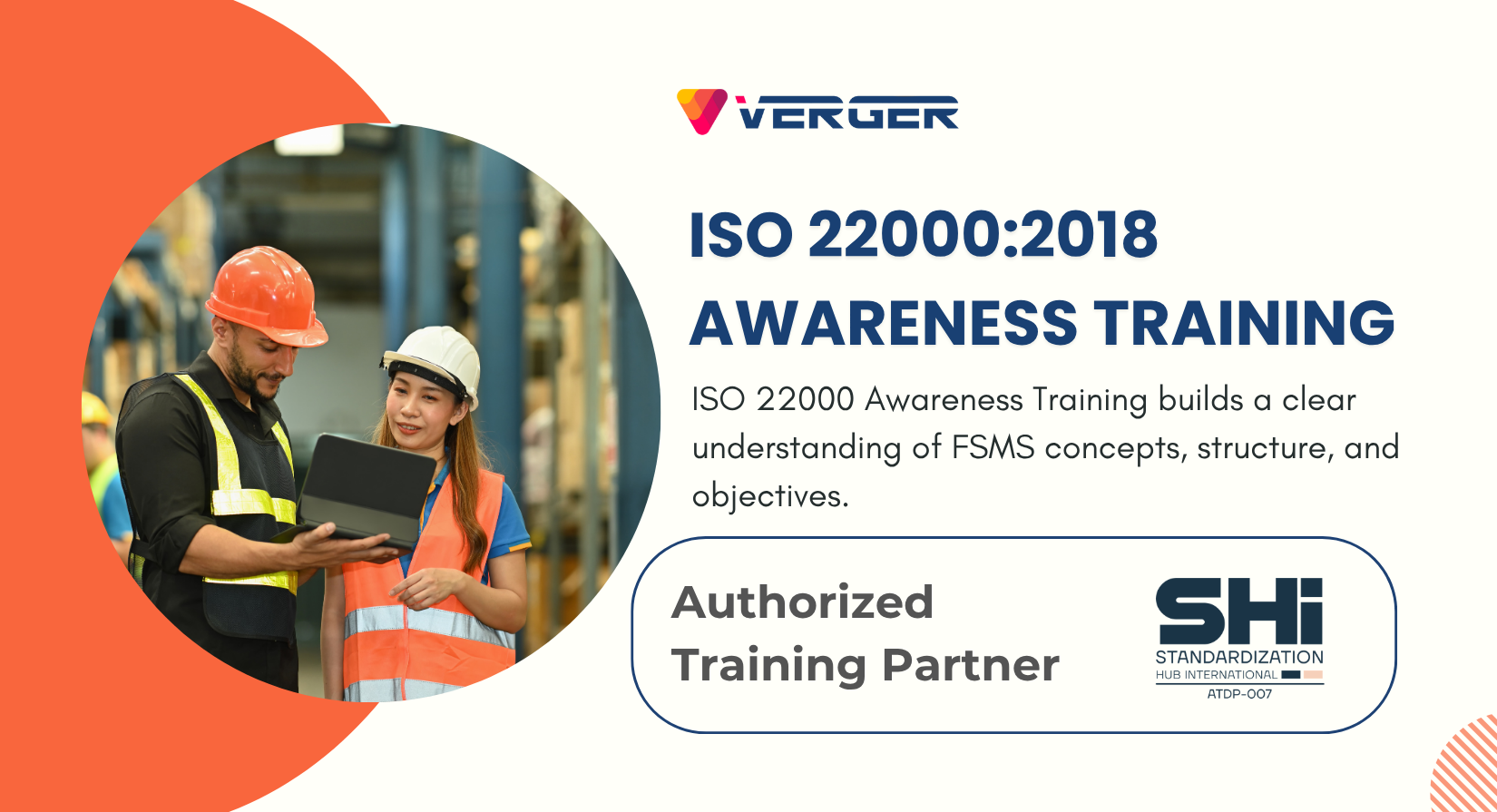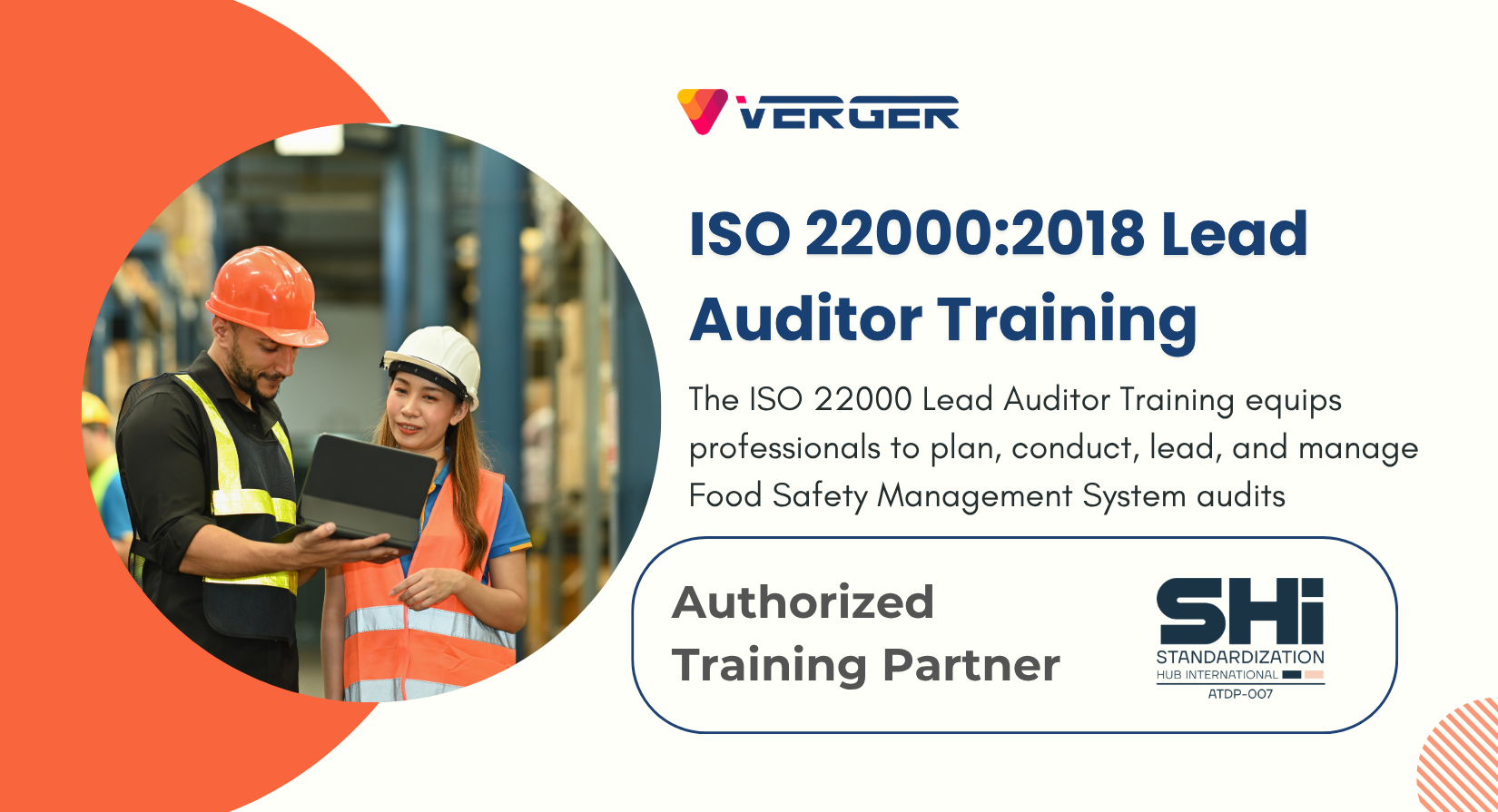 VERGER Academy offers ISO 22000 training at all levels, including Awareness, Implementation, Internal Auditor, and Lead Auditor programs.